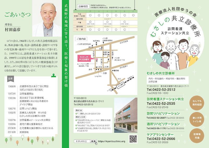 地域の要望に応えられるように、共同組織「むさしの健康悠遊会」とも協力して地域医療に貢献していきます。